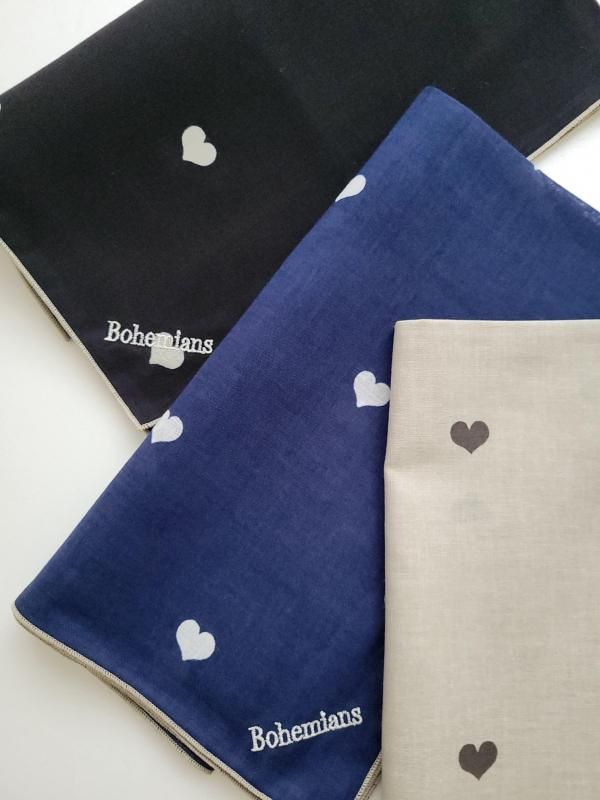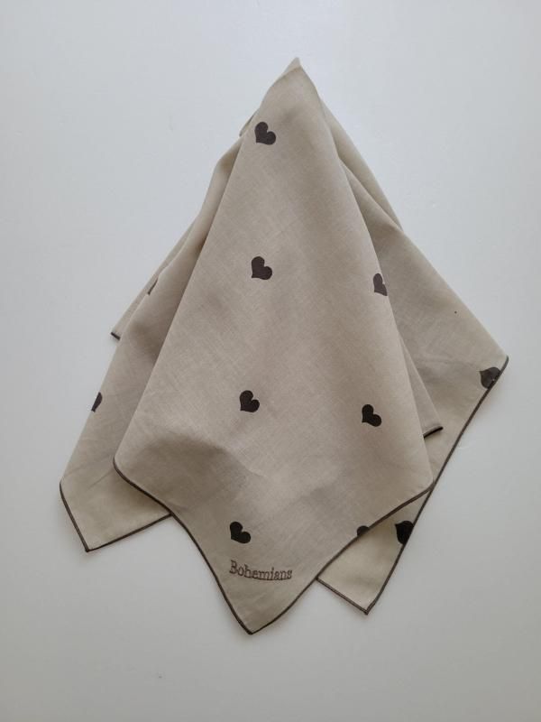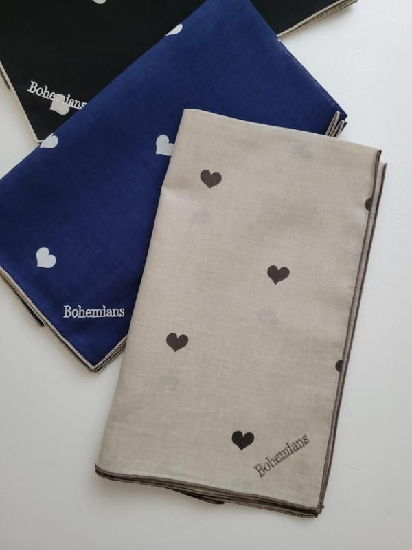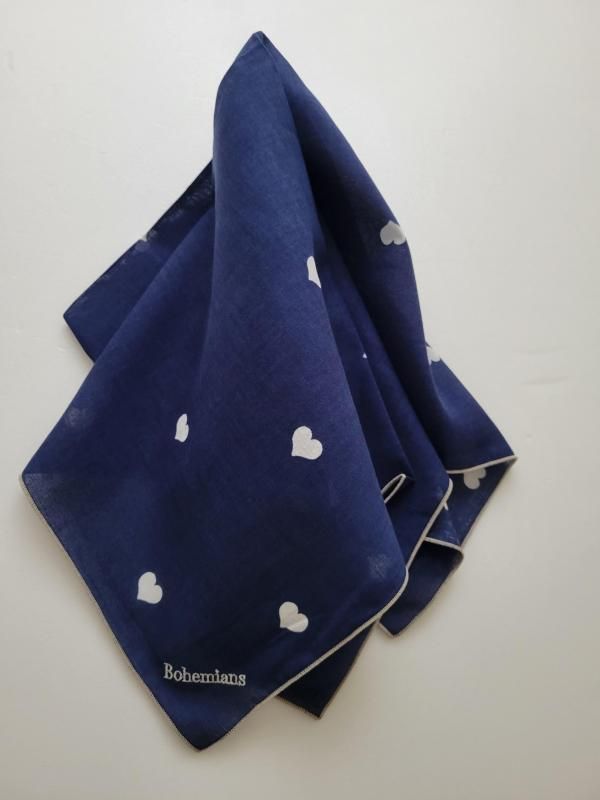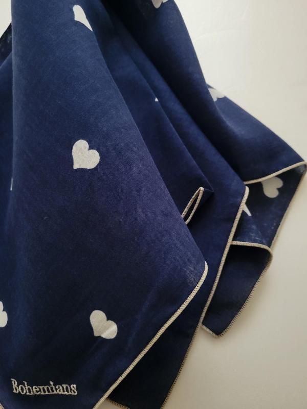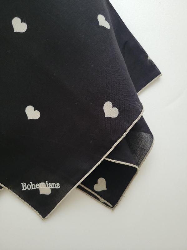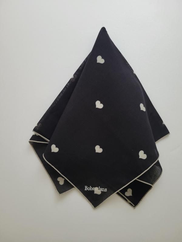 余白を空けてハート柄のモチーフを配した、”SPACE HEART” バンダナ。